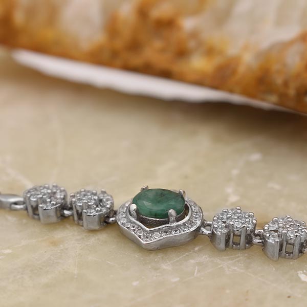 دستبند زمرد الماس تراش نقره زنانه طرح لونا