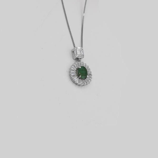 گردنبند زمرد زامبیا الماس تراش نقره زنانه طرح مرضیه