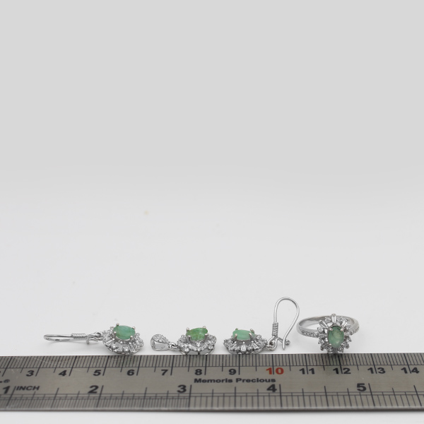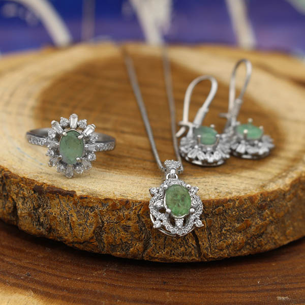 نیم ست زمرد زامبیا الماس تراش نقره زنانه طرح پریا
