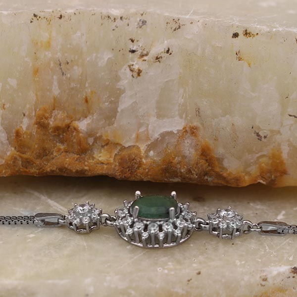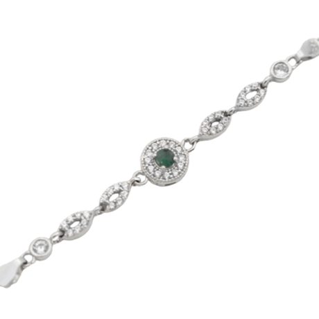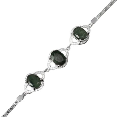دستبند زمرد الماس تراش نقره زنانه طرح پرنسس