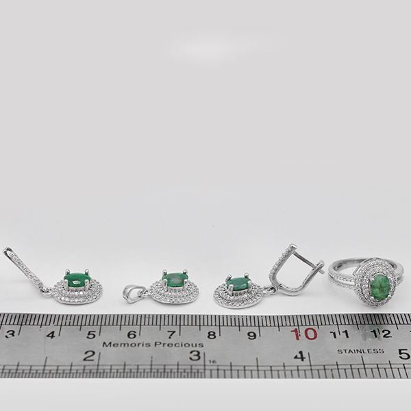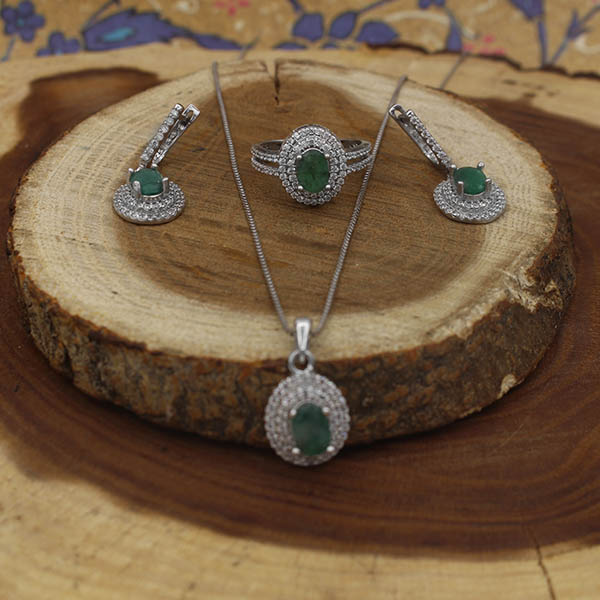 نیم ست زمرد زامبیا الماس تراش نقره زنانه طرح رباب