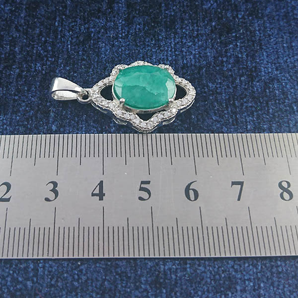 گردنبند نقره زنانه طرح رونیا با سنگ زمرد الماس تراش