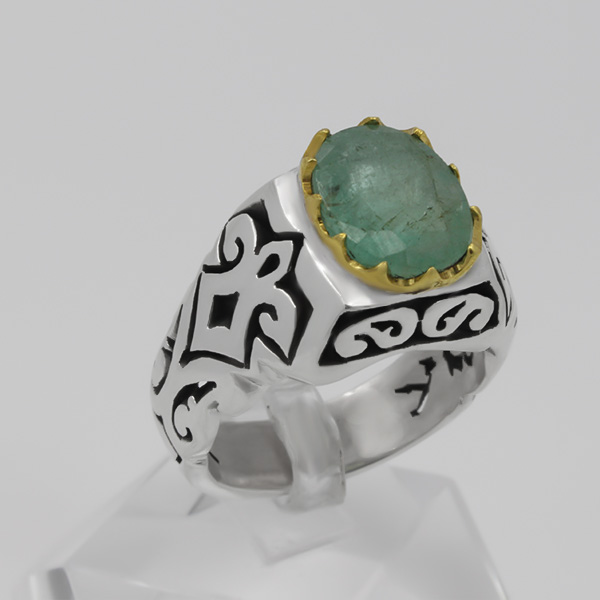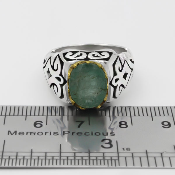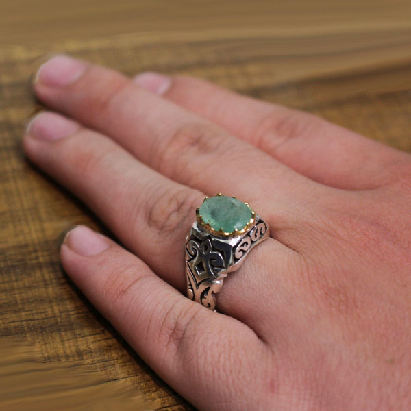 انگشتر زمرد زامبیا الماس تراش نقره مردانه فاخر دست ساز طرح سادین