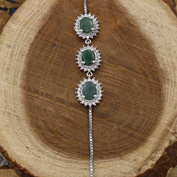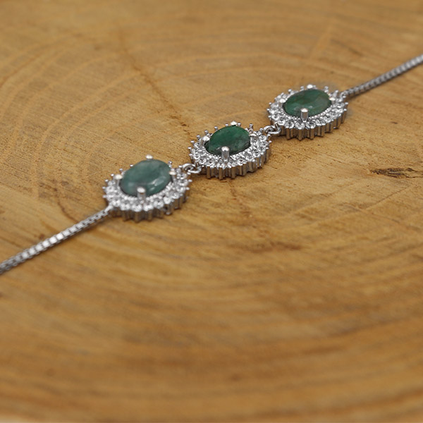 دستبند زمرد الماس تراش نقره زنانه طرح سارا