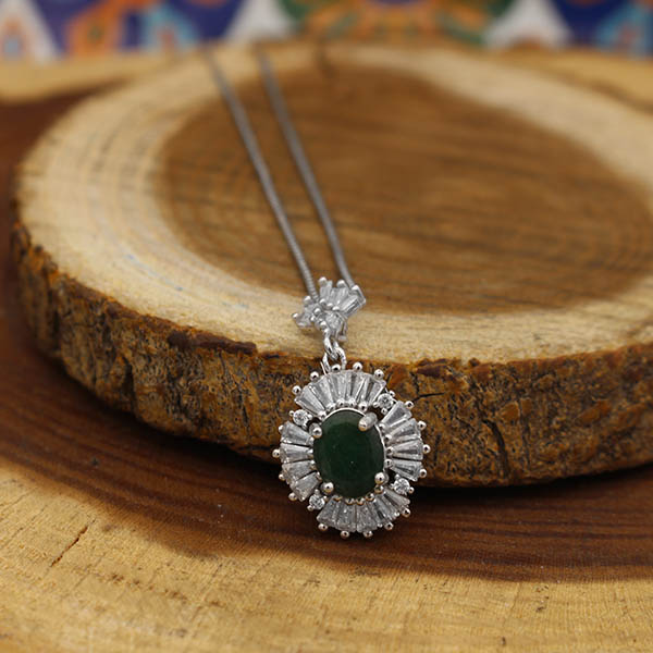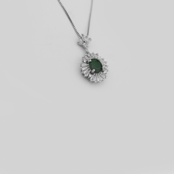 گردنبند زمرد زامبیا الماس تراش نقره زنانه طرح سرنا