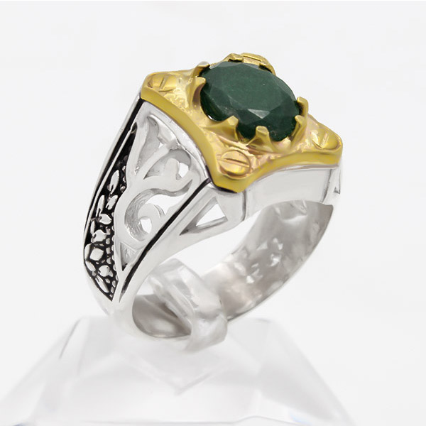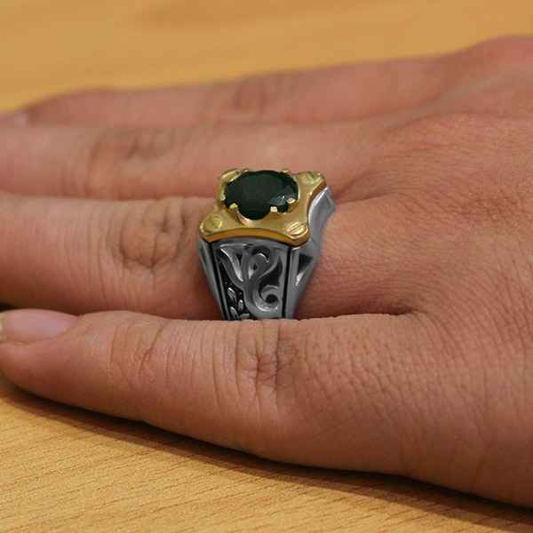 سنگ به کار رفته در این انگشتر از جنس زمرد معدنی هندی می‌باشد