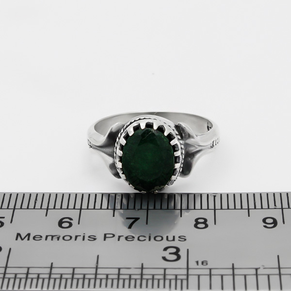 سنگ استفاده شده در این انگشتر زمرد هندی معدنی میباشد که از رنگ سبز نسبتاه تیره با پاکی خوب برخودار است.