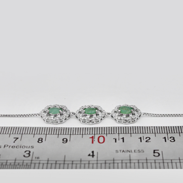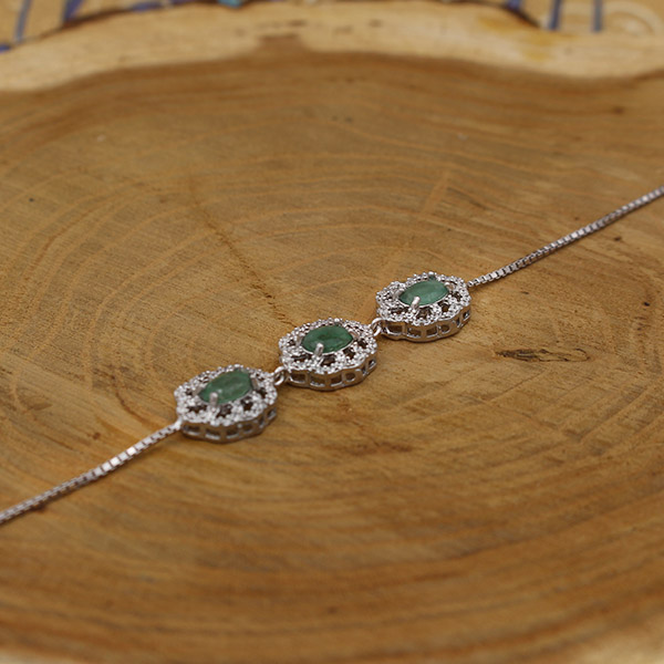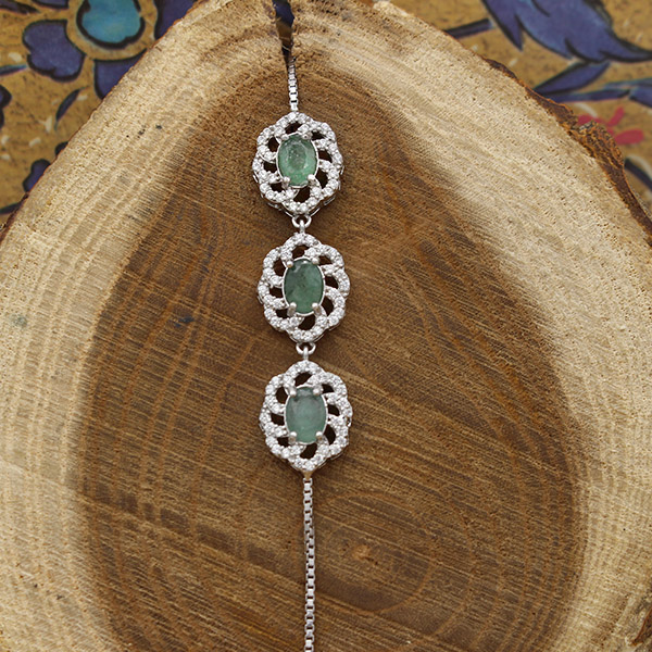 دستبند زمرد الماس تراش نقره زنانه طرح شیما