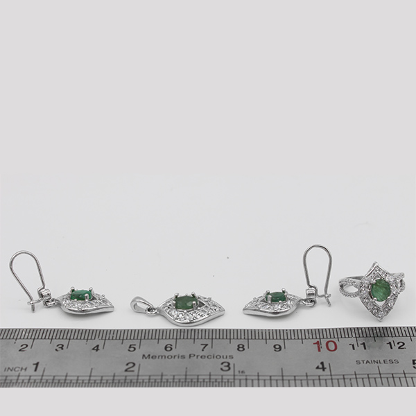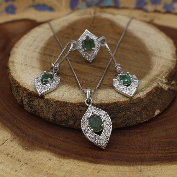 نیم ست زمرد زامبیا الماس تراش نقره زنانه طرح شیرین