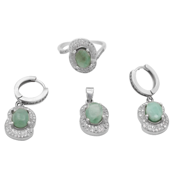 نیم ست زمرد زامبیا الماس تراش نقره زنانه طرح سرور