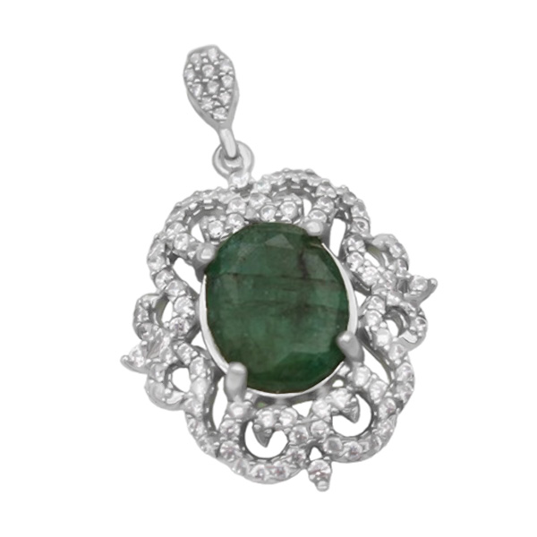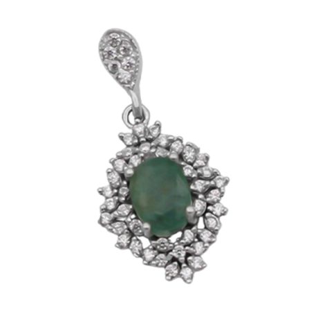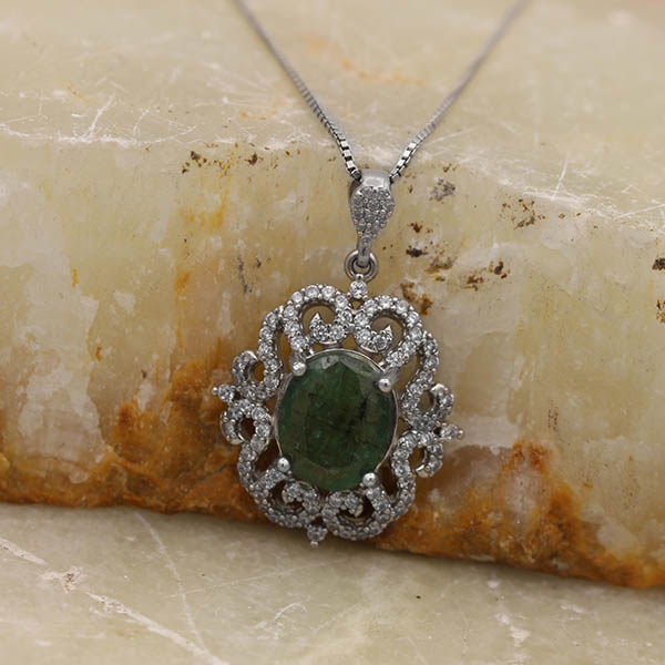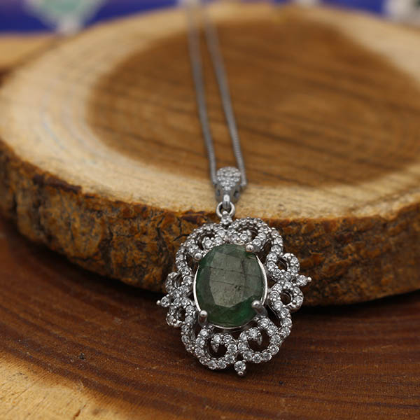 گردنبند زمرد زامبیا الماس تراش نقره زنانه طرح یارا