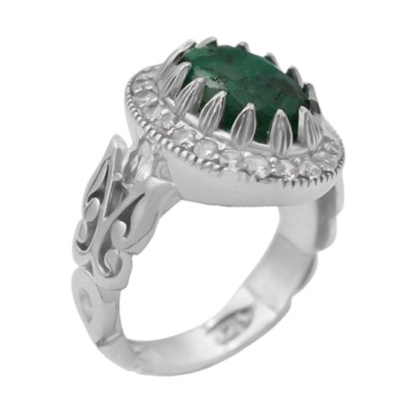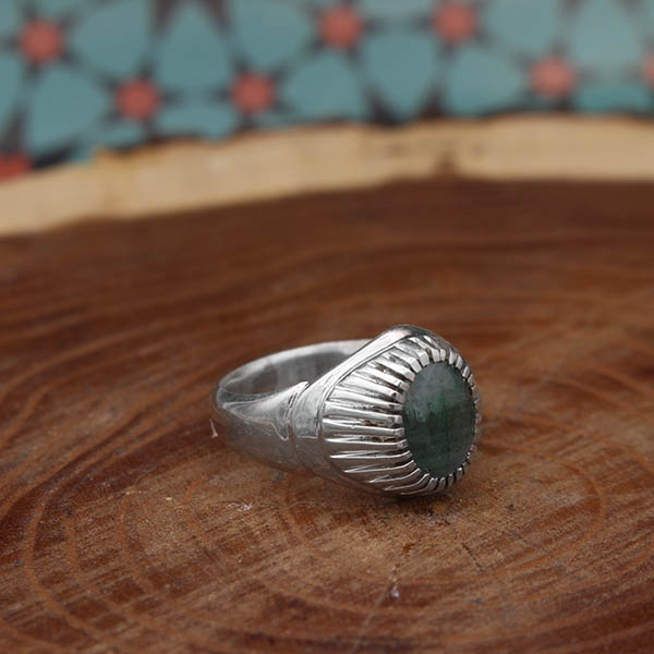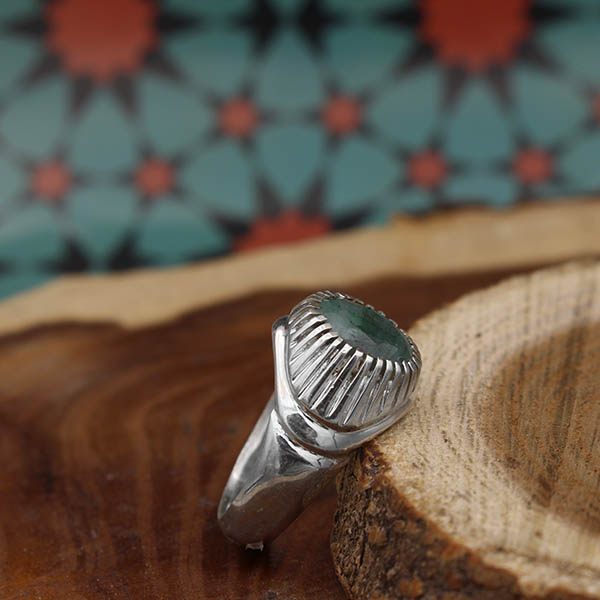انگشتر زمرد الماس تراش نقره مردانه دست ساز طرح منصور