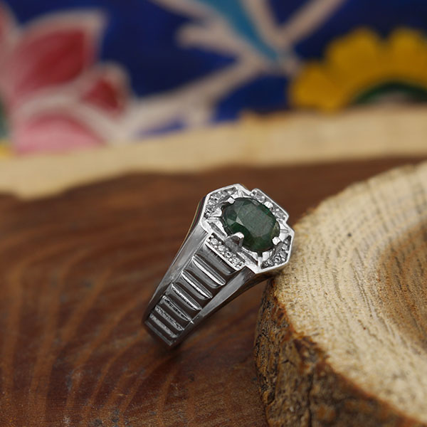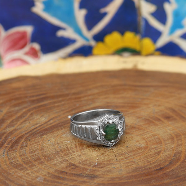 انگشتر زمرد الماس تراش نقره مردانه طرح سیامک