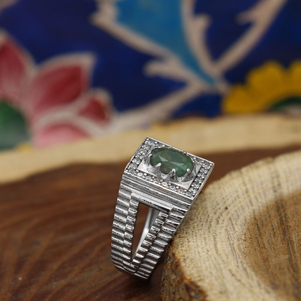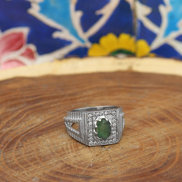 انگشتر زمرد الماس تراش نقره مردانه طرح سهراب