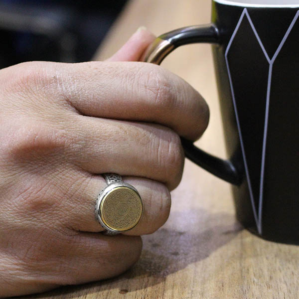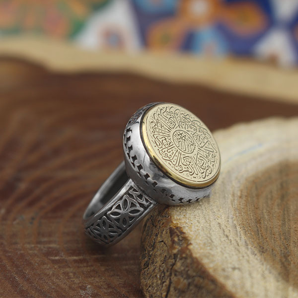 انگشتر حرز امام جواد (ع) نقره مردانه و زنانه طرح دایره ای وان یکاد + تربت امام حسین (ع)