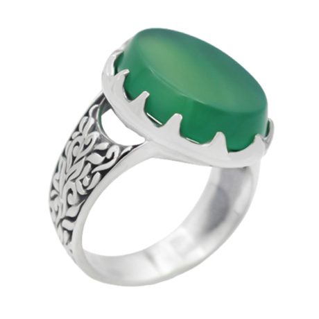 انگشتر عقیق سبز نقره دست ساز مردانه و زنانه طرح فربد + حرز امام جواد (ع)