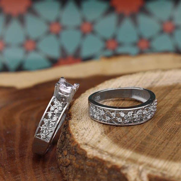 حلقه و پشت حلقه نقره زنانه طرح فرزانه
