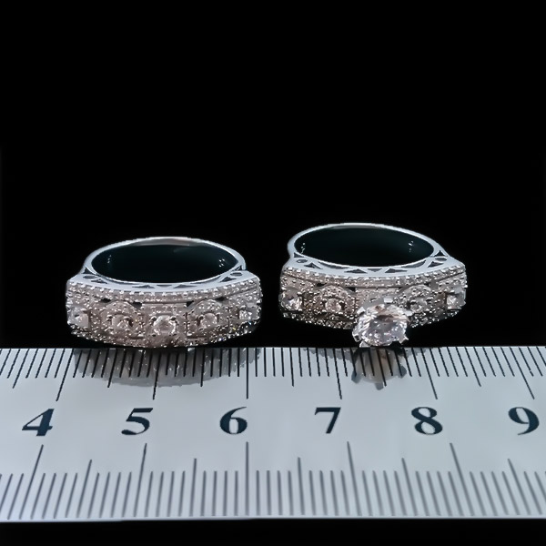 حلقه و پشت حلقه طرح فوزیه با نقره اصل از عیار ۹۲۵ و با بهترین متریال و کیفیت ساخته شده است. در دو طرف و در لبه های این محصول از یک ردیف نگین های ریز اتمی استفاده شده که در بین این دو لبه نیز شاهد استفاده از نگین های اتمی در قالب هایی به صورت مربعی شکل هستیم که همه نگین ها تراش الماس شکل دارند و نگین میانی دارای ابعاد بزرگ تری است. طراحی شبکه ای و فاصله دار سطح این محصول جلوه مجلل و بسیار زیبایی را به وجود آورده است. سطح این حلقه دارای پنج قطعه متصل به هم می باشد که بر روی قطعه میانی، تک نگینی شفاف و بدون رنگ به زیبایی و با دقت و مهارت بالایی قرار گرفته است. این محصول دارای ابعاد نسبتا درشتی می باشد و قیمت مناسب و کیفیت بالای آن از ویژگی های برجسته این طرح محسوب می شود. این انگشتر دارای آبکاری طلا سفید نیز می باشد که به سبک کار های مدرن و شیک، طراحی و ساخته شده است. این حلقه در اندازه های مختلف قابل سایز شدن می باشد.
