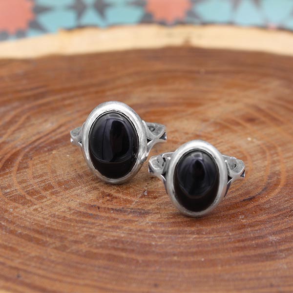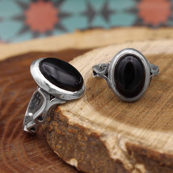 انگشتر ست عقیق مشکی نقره مردانه و زنانه طرح آزادی