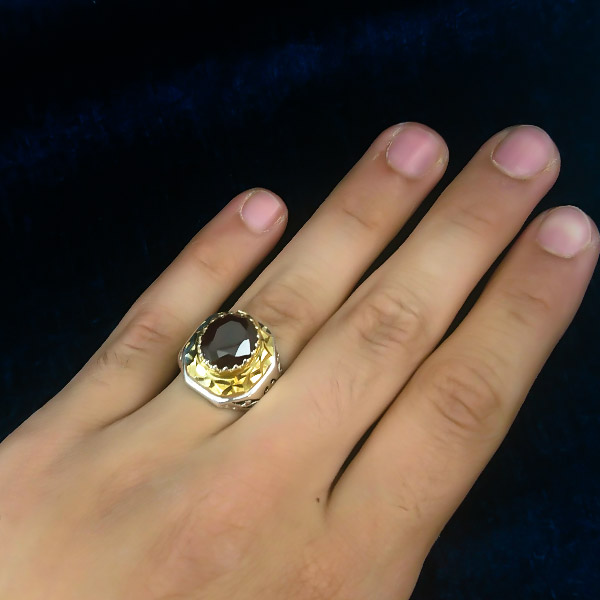 انگشتر نقره مردانه فاخر دست ساز طرح الوند با سنگ گارنت الماس تراش