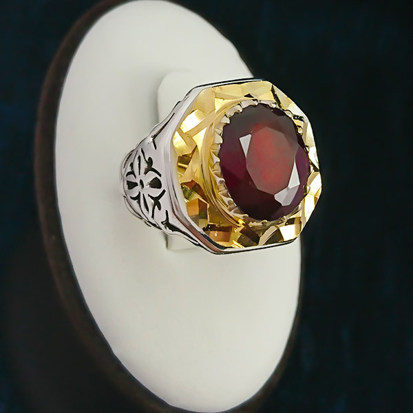 انگشتر نقره مردانه فاخر دست ساز طرح آرش با سنگ گارنت الماس تراش