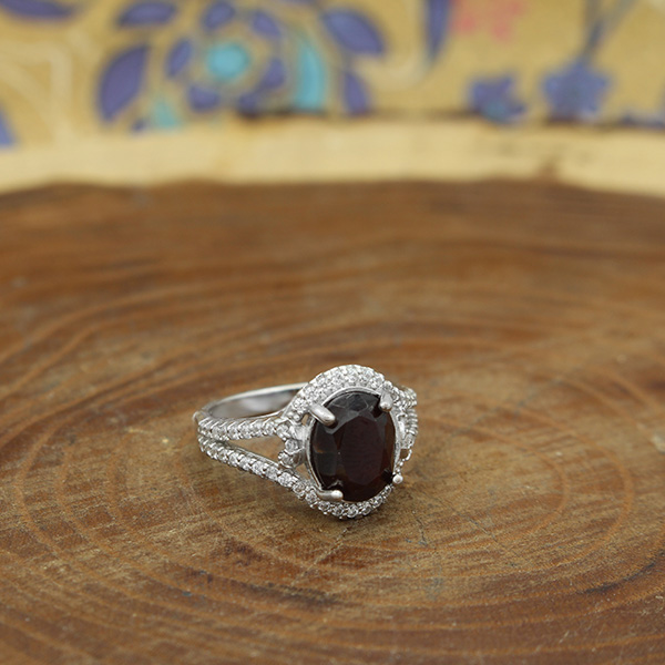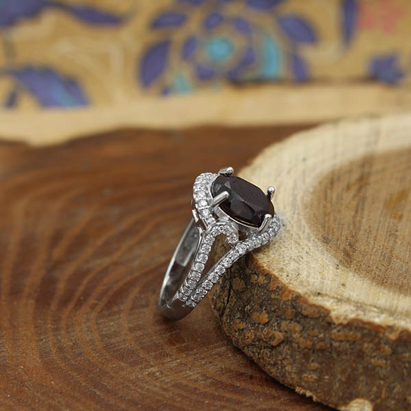 انگشتر گارنت الماس تراش نقره زنانه طرح آسنات