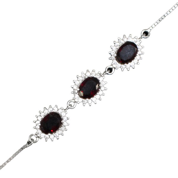دستبند گارنت الماس تراش نقره زنانه طرح بهینا