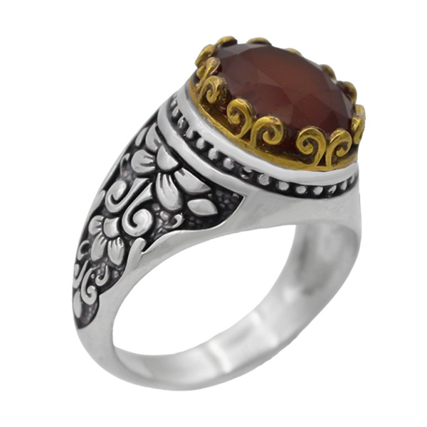 انگشتر گارنت الماس تراش نقره مردانه طرح دور طلایی فرینام