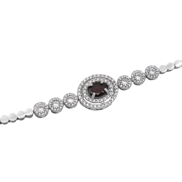 دستبند گارنت الماس تراش نقره زنانه طرح غزال