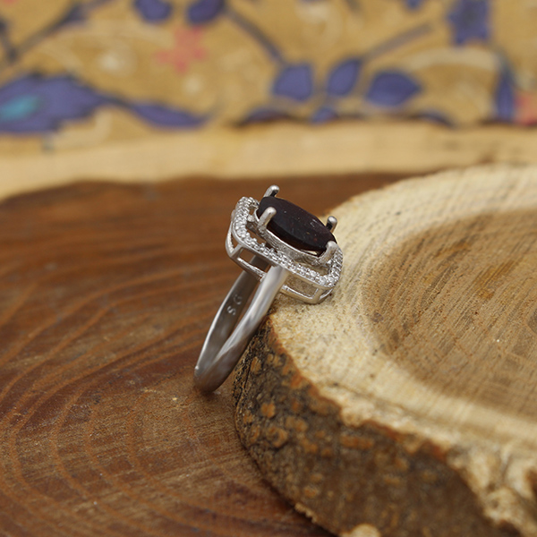 انگشتر گارنت الماس تراش نقره زنانه طرح حلیمه