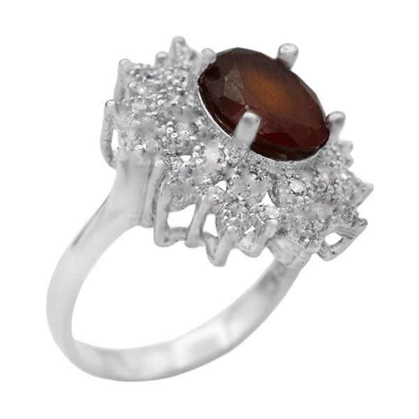 انگشتر گارنت الماس تراش نقره زنانه طرح خضرا