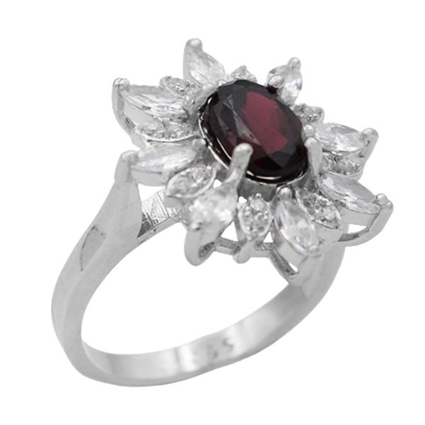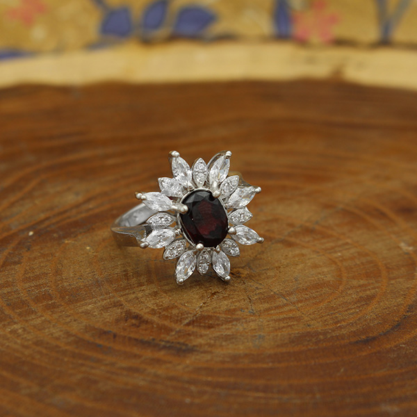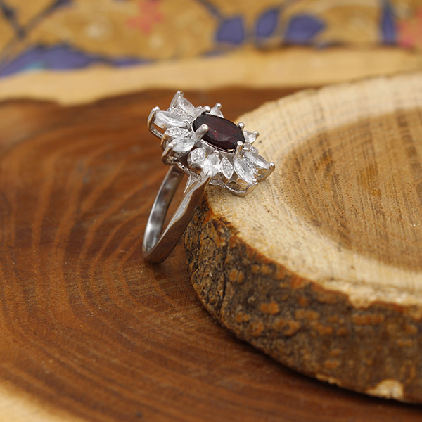 انگشتر گارنت الماس تراش نقره زنانه طرح کوثر