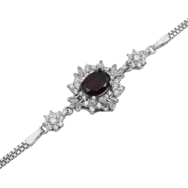 دستبند گارنت الماس تراش نقره زنانه طرح مستانه