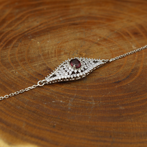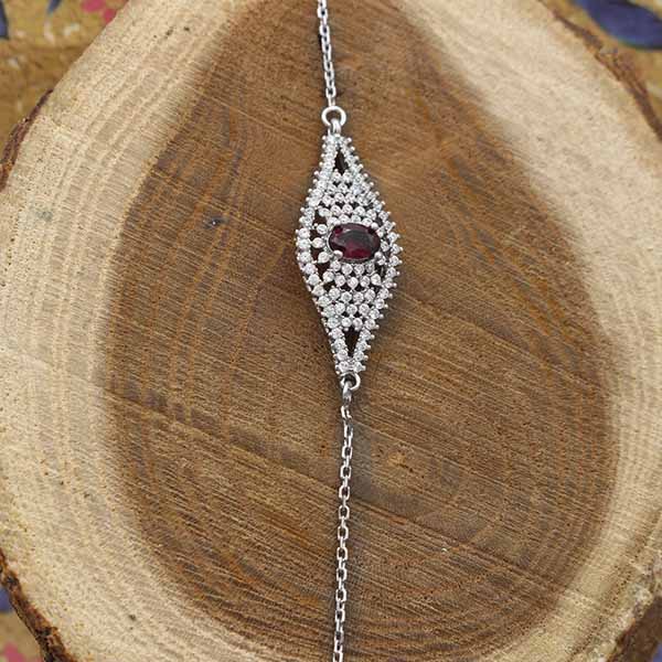 دستبند گارنت الماس تراش نقره زنانه طرح مهرزاد