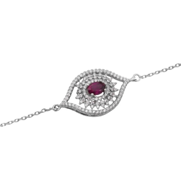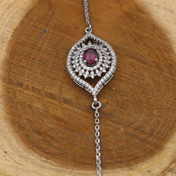 دستبند گارنت الماس تراش نقره زنانه طرح نرگس
