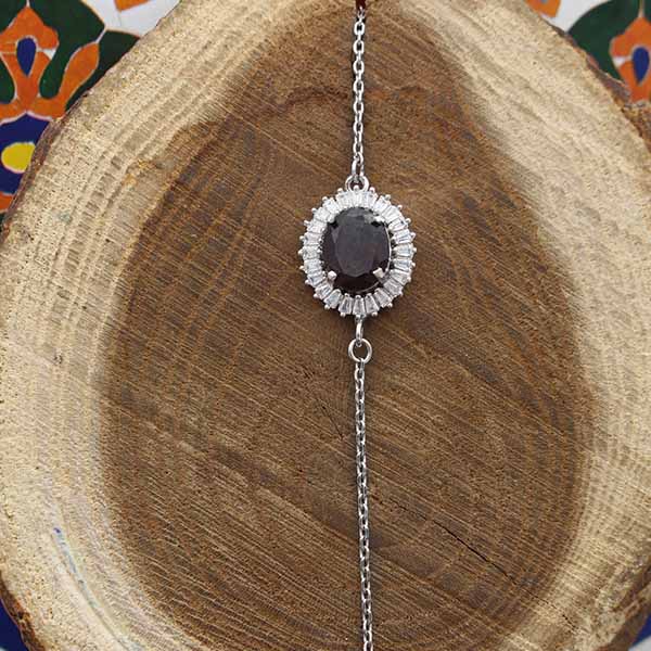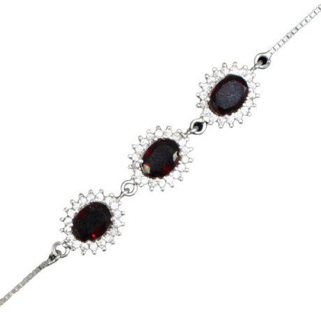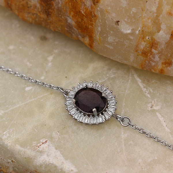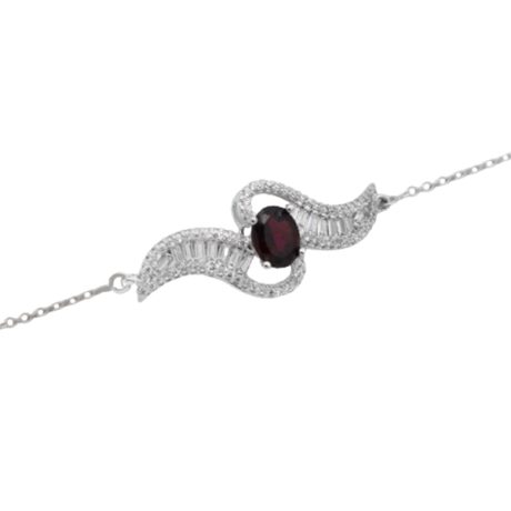 دستبند گارنت الماس تراش نقره زنانه طرح نوا