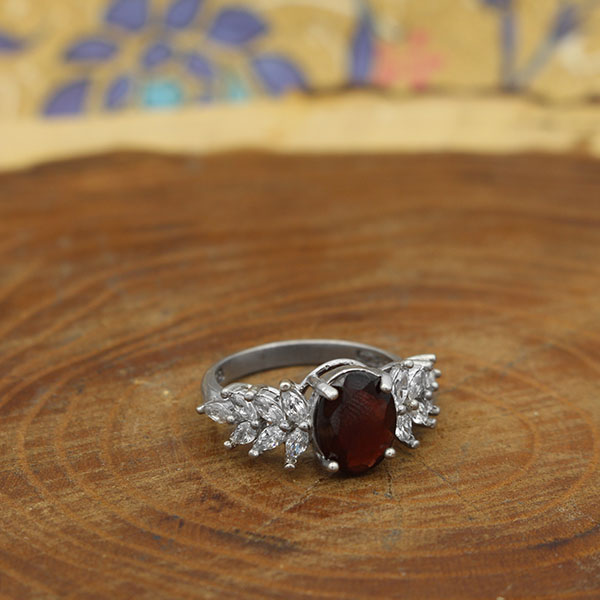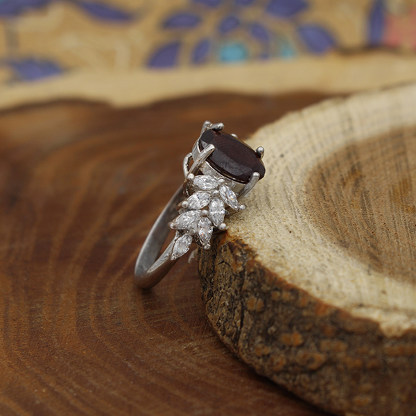 انگشتر گارنت الماس تراش نقره زنانه طرح پرستو