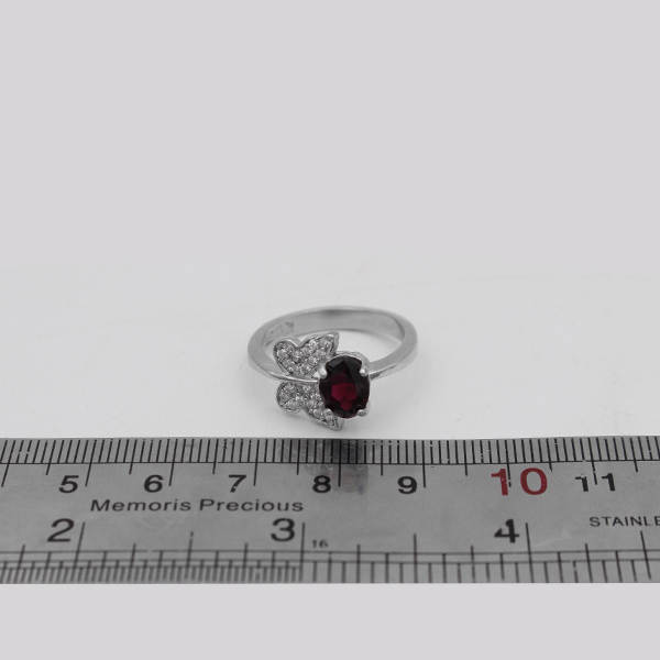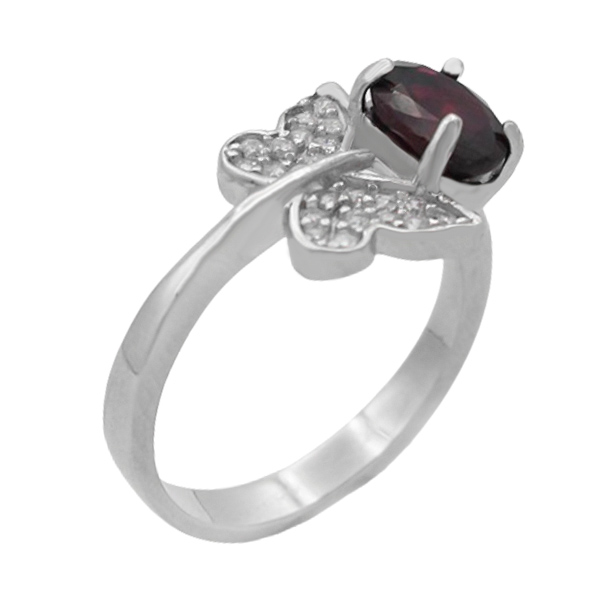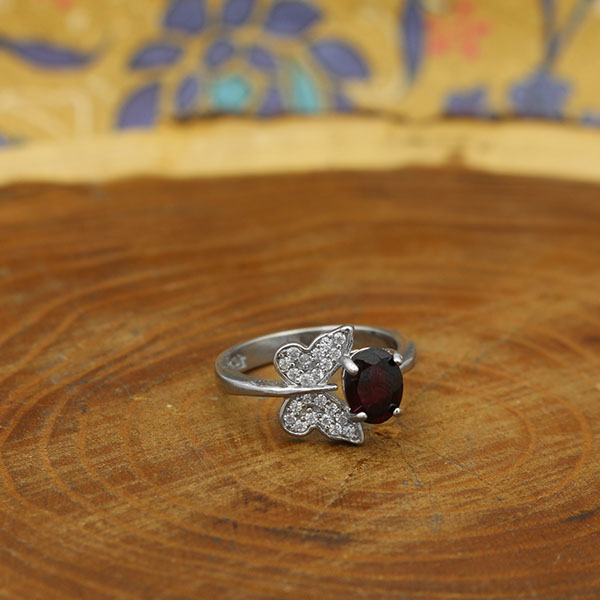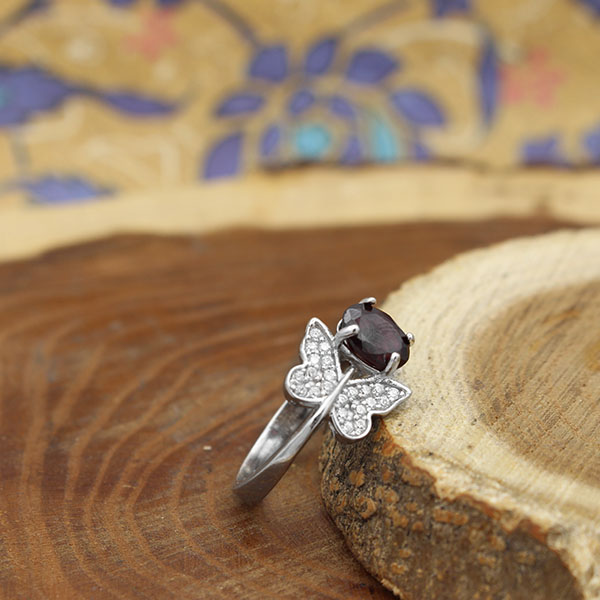 انگشتر گارنت الماس تراش نقره زنانه طرح پروانه