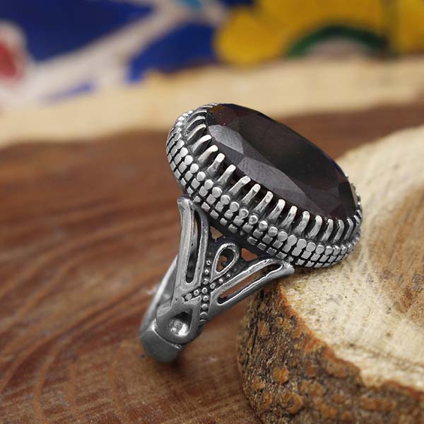 انگشتر گارنت نقره مردانه طرح سردار دلها