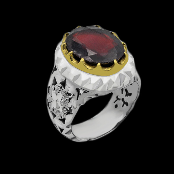 انگشتر گارنت الماس تراش فاخر دست ساز نقره مردانه طرح شهروز