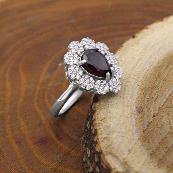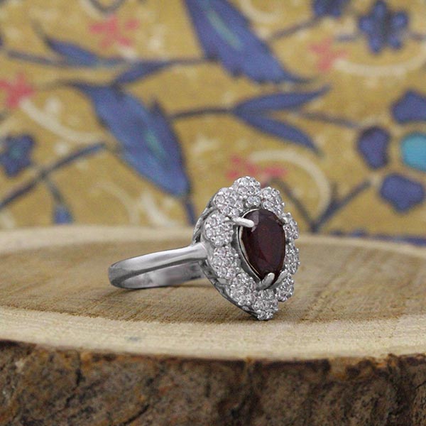 انگشتر گارنت نقره زنانه طرح طوبی