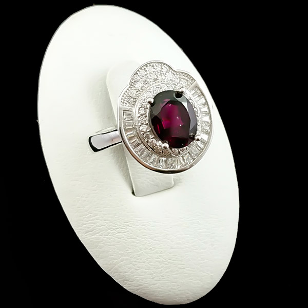 انگشتر نقره زنانه طرح ویدا با سنگ گارنت الماس تراش