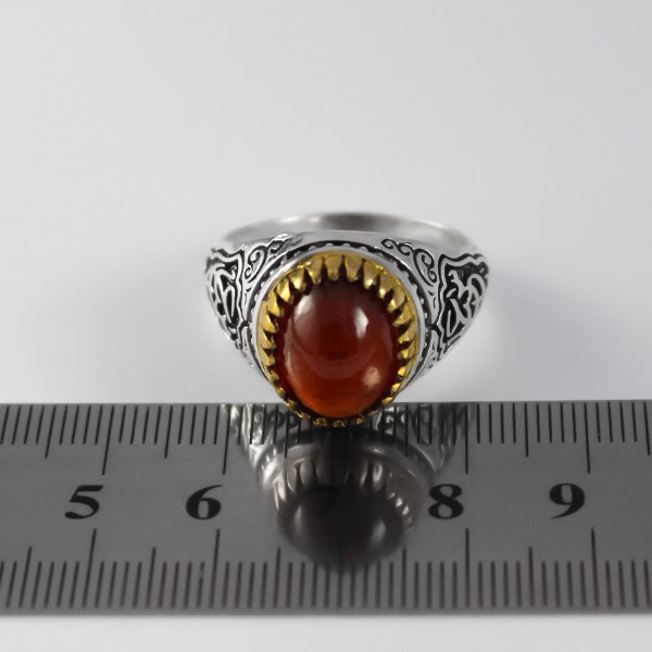 انگشتر گارنت نقره مردانه طرح دور طلایی یا عباس ۲