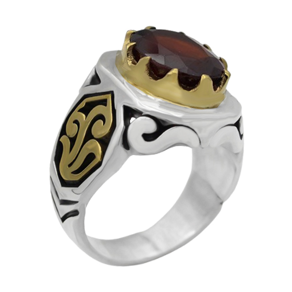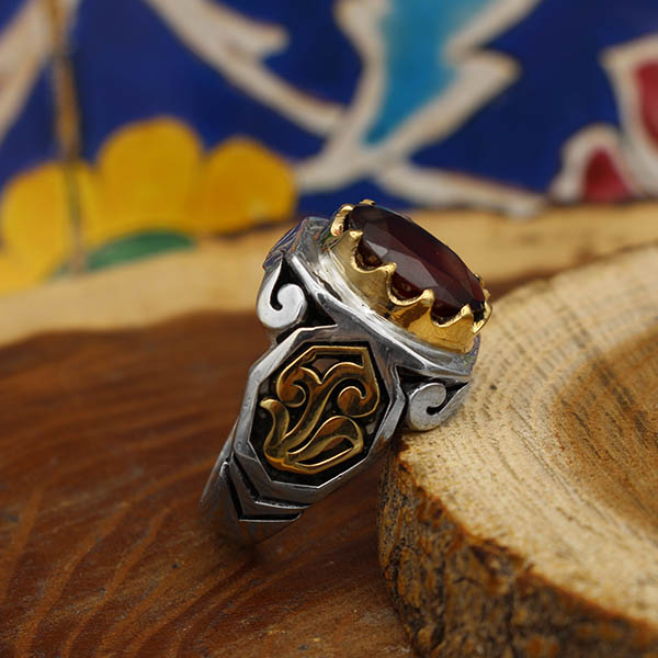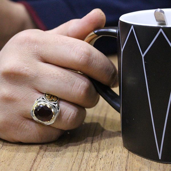 انگشتر گارنت نقره مردانه طرح یاسین