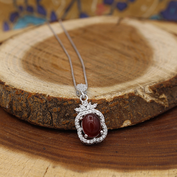 گردنبند عقیق سرخ نقره زنانه طرح گلاره
