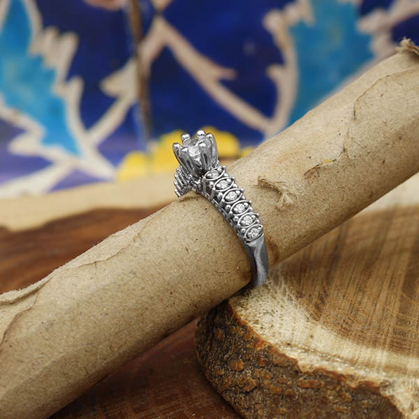 حلقه تک نگین نقره زنانه طرح گلسا