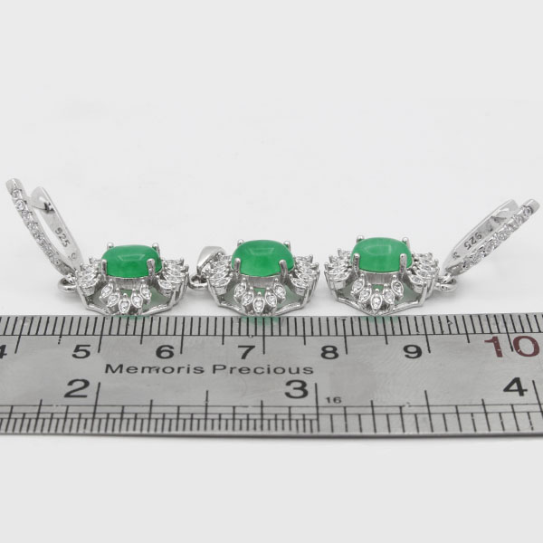 نیم ست عقیق سبز نقره زنانه طرح آبان