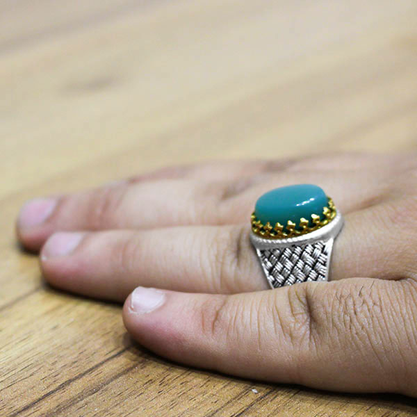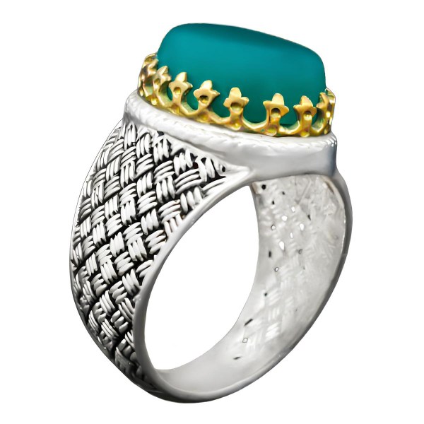 انگشتر عقیق سبز نقره مردانه طرح دورطلایی آدلان