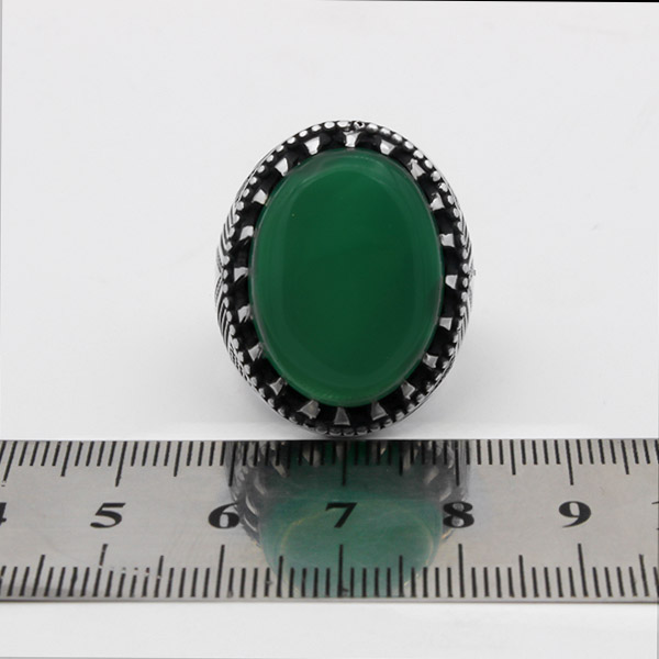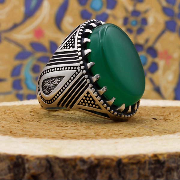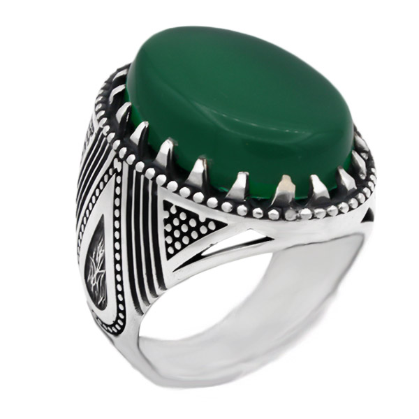 انگشتر عقیق سبز نقره مردانه طرح فاخر گردیا