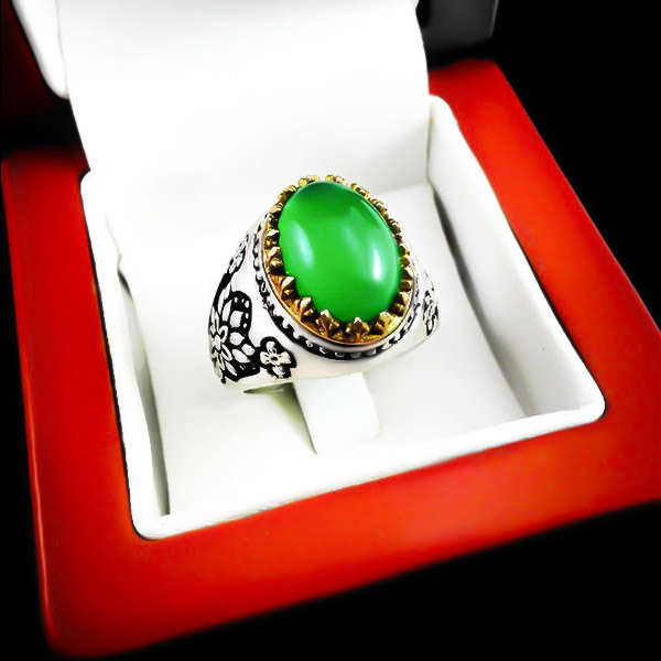انگشتر عقیق سبز نقره مردانه طرح همایون
